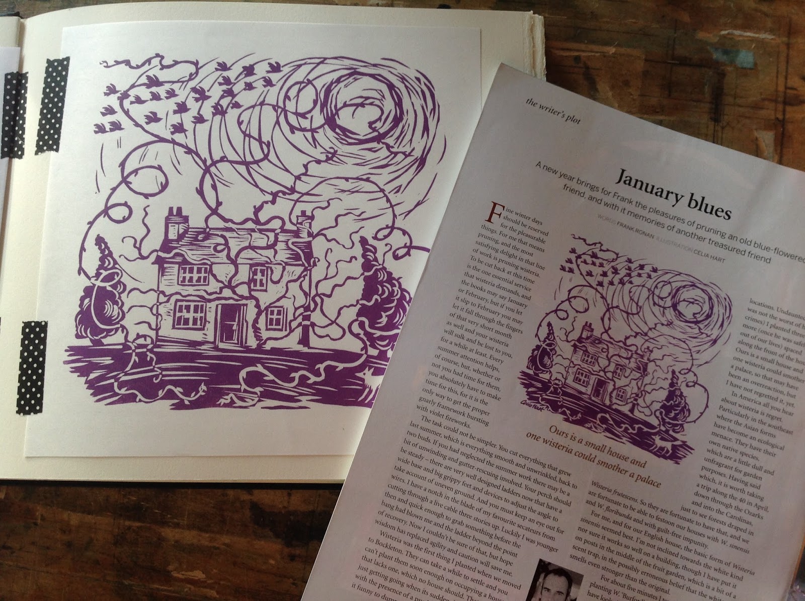 Times change and these days you'll mainly find me on Instagram or Twitter rather than keeping this blog up to date. But it would be shame not to continue to record here my linocut illustrations for Frank Ronan's monthly column in Gardens Illustrated magazine . . . so here begins a round up with the illustrations for January 2017 to June 2017 . . .